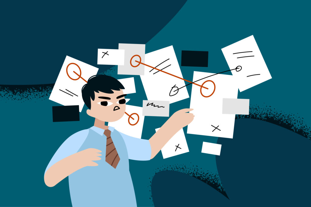 • действие (что мы делаем?): это конкретные процессы и задачи, которые выполняют сотрудники. Например, как они ведут переговоры, планируют свой день или пишут код. Проблема здесь — неэффективные действия или их отсутствие;